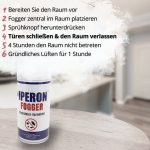 Den Fogger zentral und aufrecht auf einen erhöhten, mit Zeitungspapier abgedeckten, Platz stellen. Den Sprühknopf niederdrücken bis er einrastet und den Raum für mindestens 2 Stunden verlassen. Türen schließen. Nach der Behandlung mindestens eine Stunde durchlüften. Der Inhalt entleert sich binnen Minuten und reicht für bis zu 30 m².